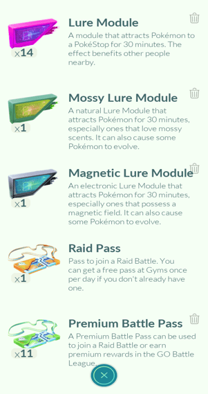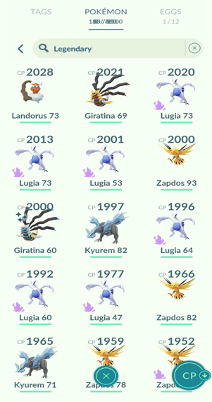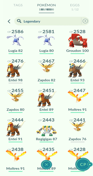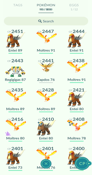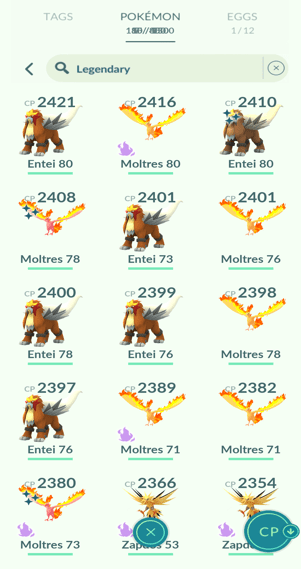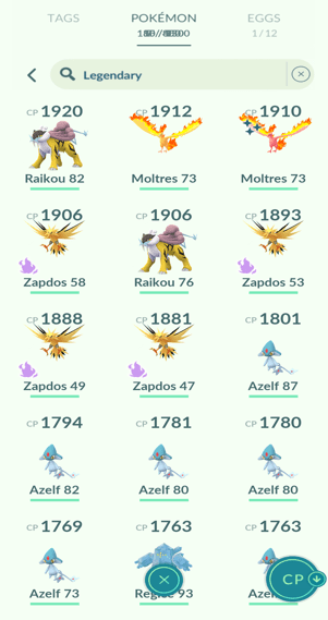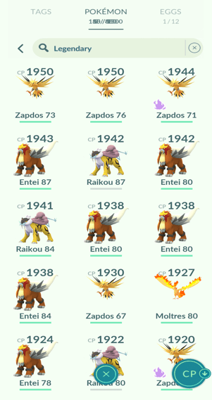 31x Articuno, 18x Zapdos, 11x Moltres