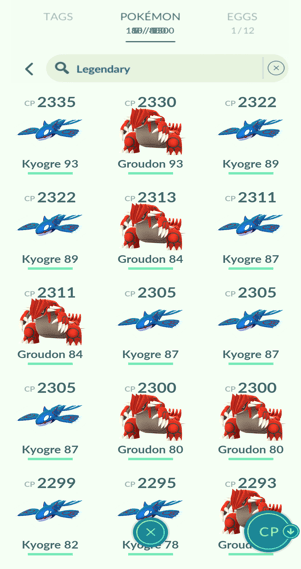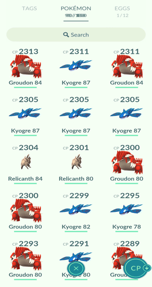 11x Kyogre, 11x Groudon, 1x Rayquaza