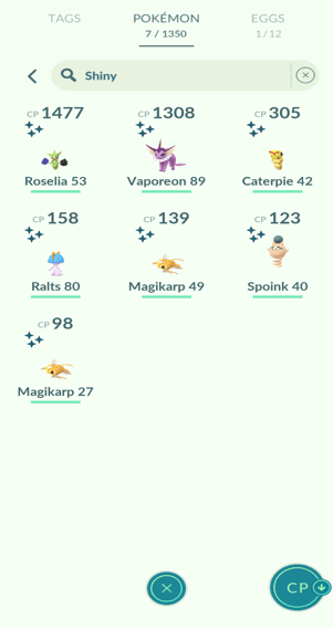 1x Caterpie, 2x Magikarp, 1x Vaporeon