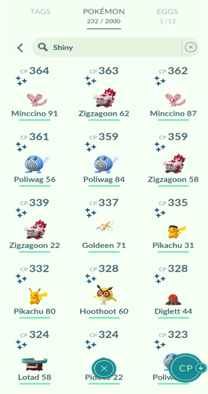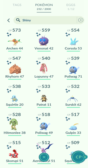 1x Diglett (Alola), 25x Poliwag, 1x Poliwhirl