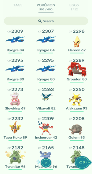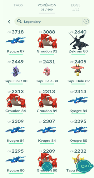 7x Kyogre, 4x Groudon, 1x Mesprit