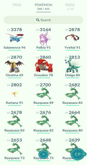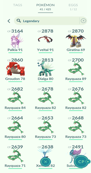 9x Rayquaza, 1x Palkia (Origin), 1x Regigigas