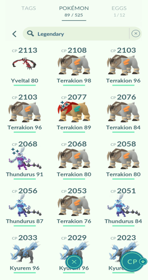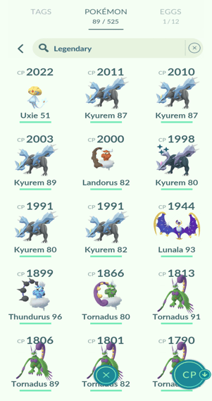 1x Landorus (Incarnate), 15x Kyurem, 1x Kyurem (Black)