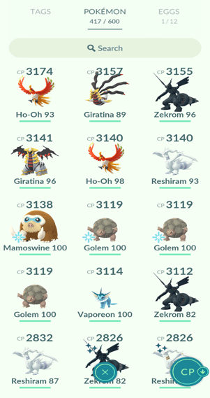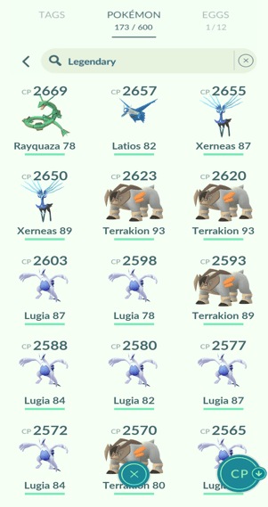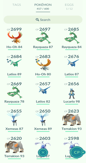12x Lugia, 8x Ho-Oh, 5x Regirock