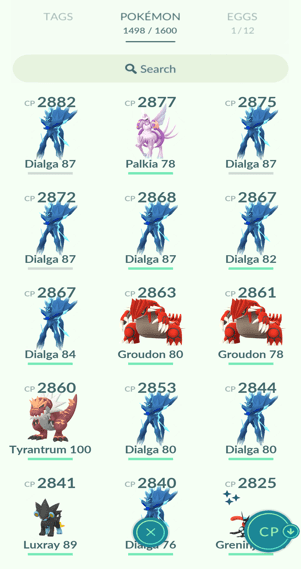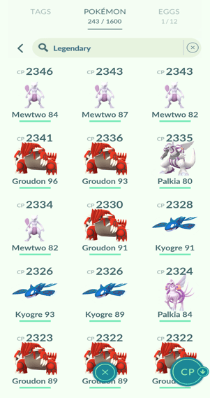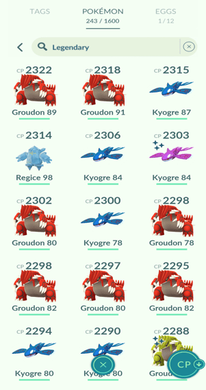 14x Kyogre, 24x Groudon, 8x Rayquaza