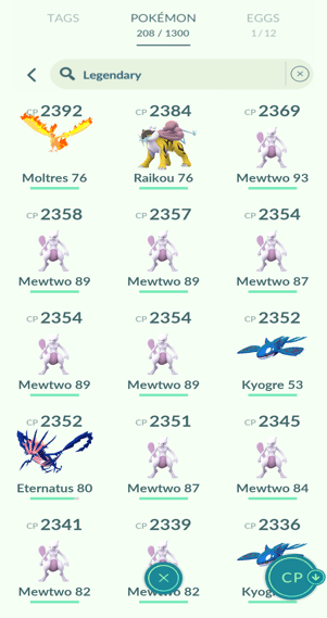 19x Mewtwo, 1x Mewtwo (Armored), 14x Raikou