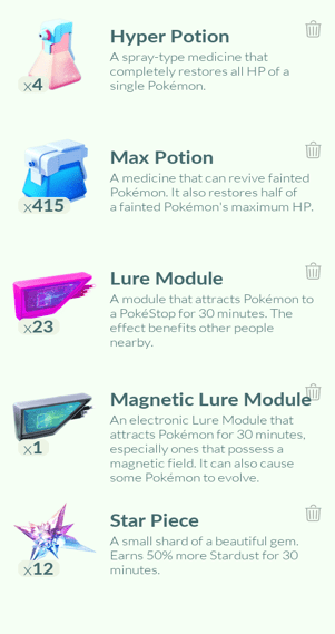 1x Charmander, 2x Geodude, 1x Golem