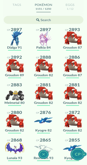 4x Latios, 16x Kyogre, 15x Groudon