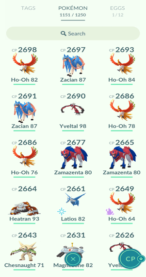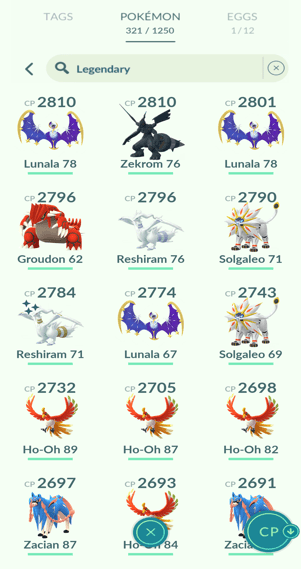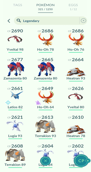 1x Entei, 21x Lugia, 12x Ho-Oh