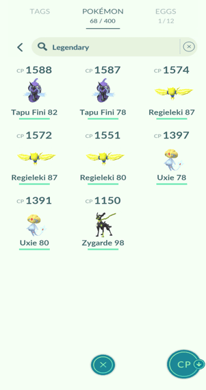 3x Mesprit, 4x Heatran, 4x Regigigas