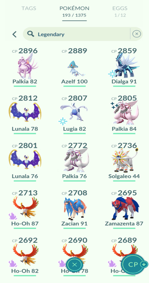 2x Entei, 13x Lugia, 12x Ho-Oh