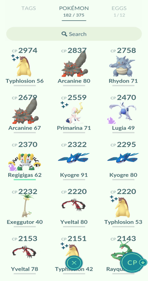 2x Magikarp, 15x Cyndaquil, 6x Typhlosion