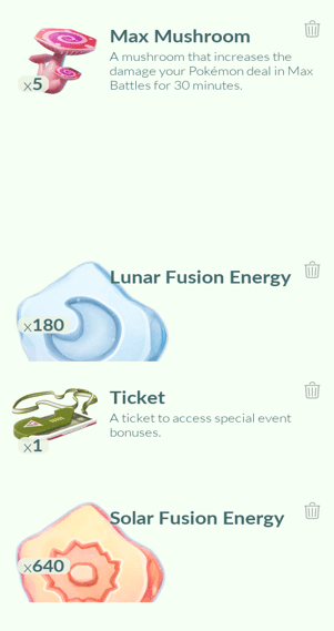 1x Mareanie, 4x Fomantis, 1x Morelull