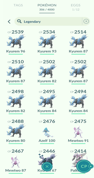 16x Kyurem, 9x Xerneas, 1x Yveltal