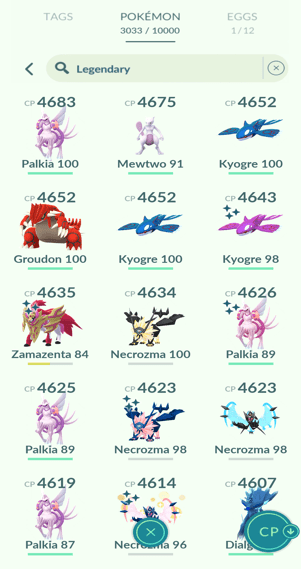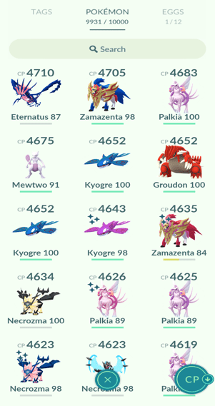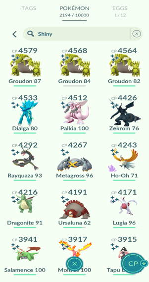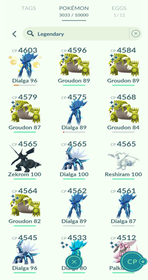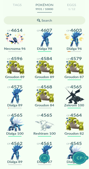 29x Kyogre, 39x Groudon, 22x Rayquaza