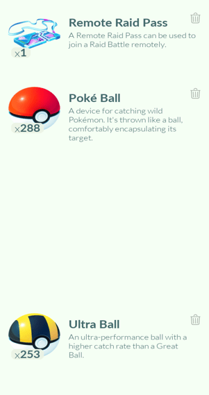 1x Weedle, 6x Pidgey, 1x Pidgeotto