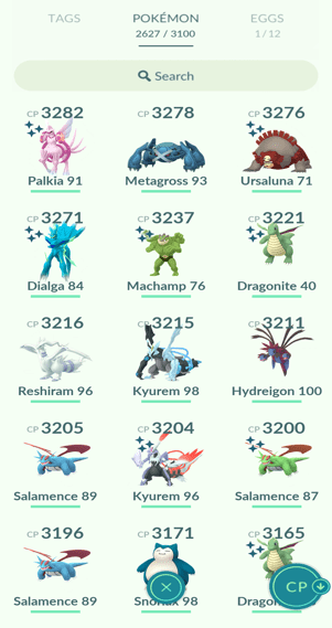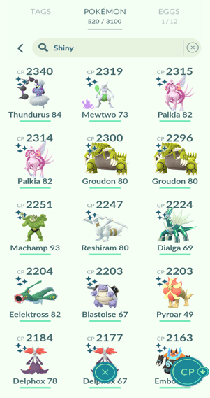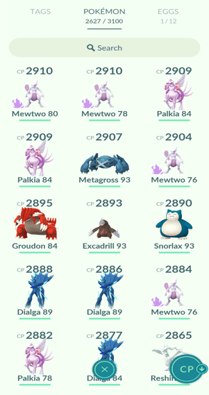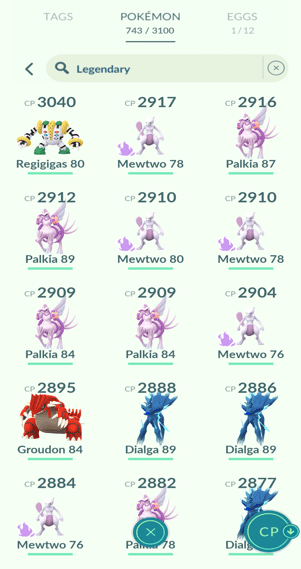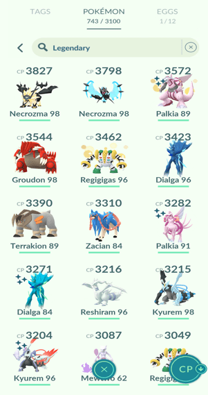 9x Palkia, 16x Heatran, 19x Regigigas