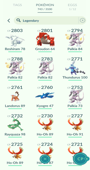 16x Kyogre, 13x Groudon, 20x Rayquaza