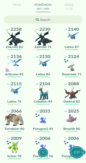 1x Articuno, 2x Zapdos, 3x Latios