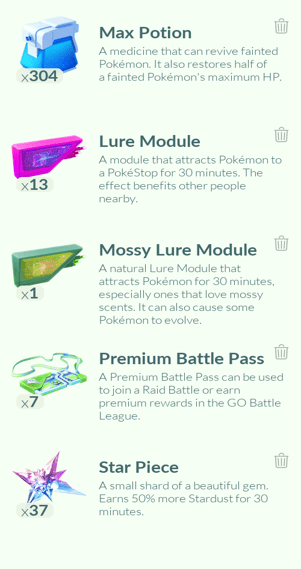 1x Victreebel, 10x Geodude, 3x Geodude (Alola)