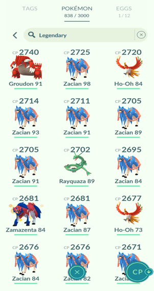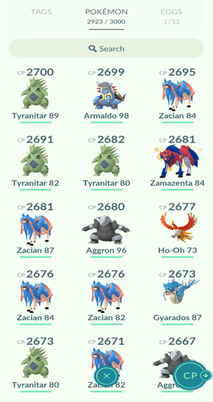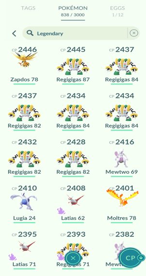 41x Lugia, 16x Ho-Oh, 7x Regirock