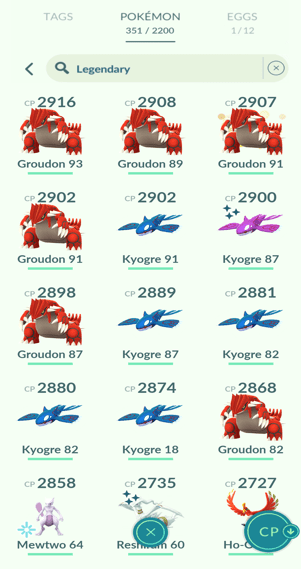 9x Latios, 28x Kyogre, 28x Groudon