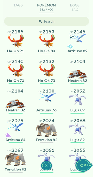 5x Lugia, 7x Ho-Oh, 2x Uxie