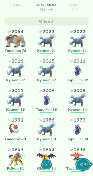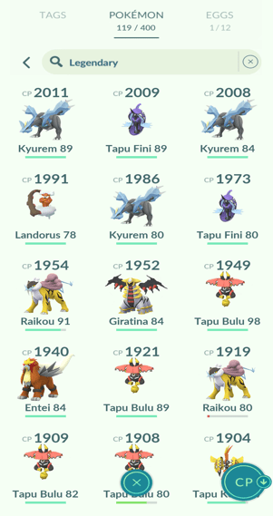 10x Kyurem, 1x Zygarde (10%), 3x Tapu Koko