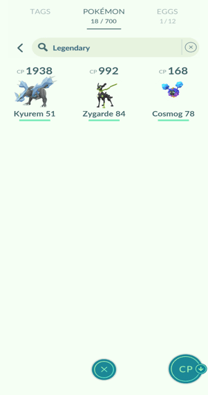 2x Kyurem, 1x Zygarde (10%), 1x Cosmog