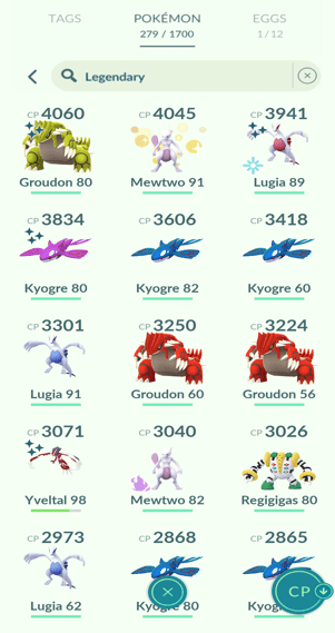 1x Kyogre, 1x Groudon, 1x Regigigas