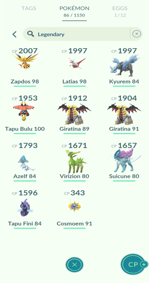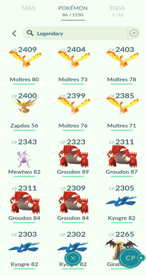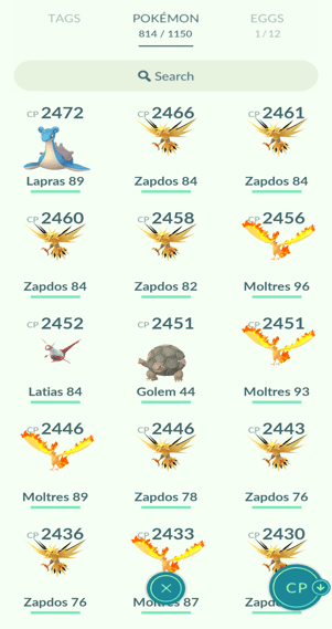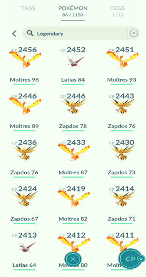 7x Articuno, 13x Zapdos, 12x Moltres