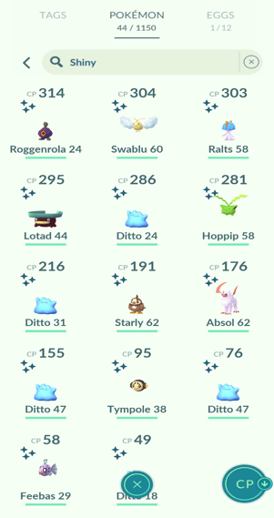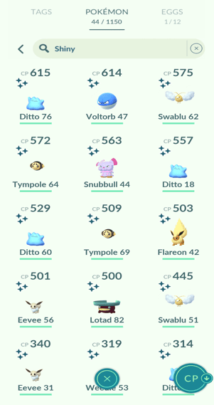 9x Ditto, 3x Eevee, 1x Jolteon