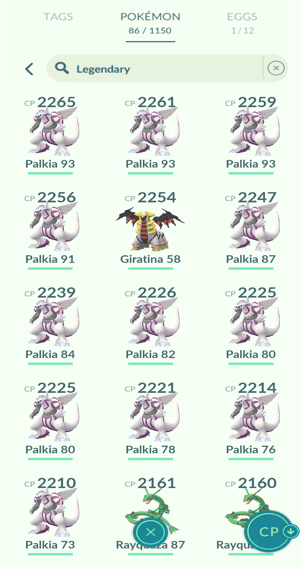1x Dialga, 12x Palkia, 4x Giratina (Altered)