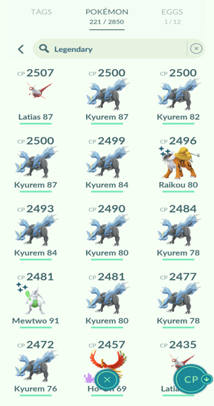12x Suicune, 12x Lugia, 8x Ho-Oh