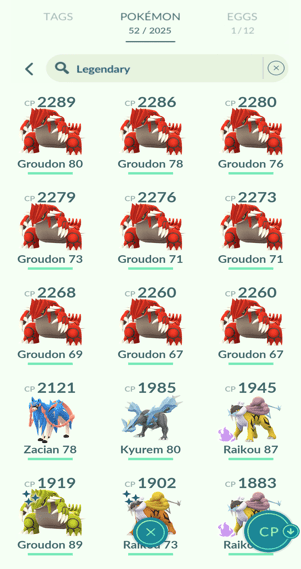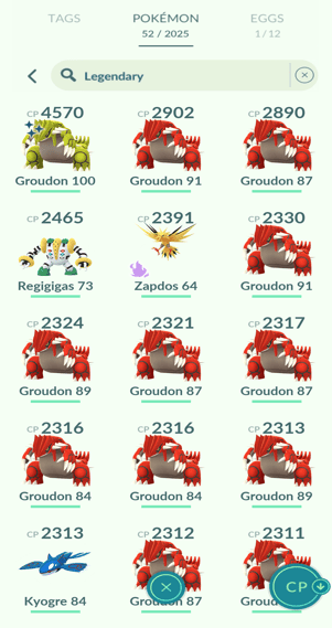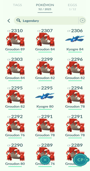 1x Ho-Oh, 3x Kyogre, 33x Groudon