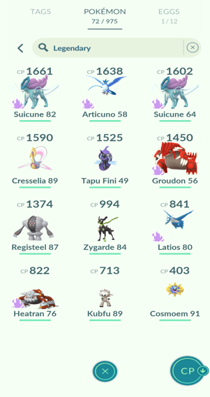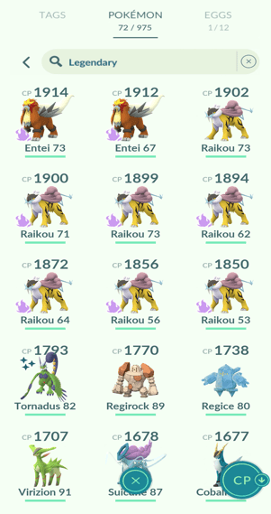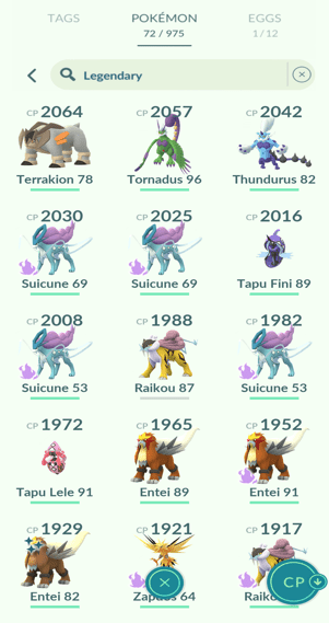 8x Suicune, 1x Ho-Oh, 1x Regirock