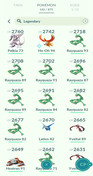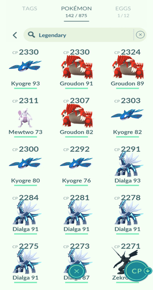 5x Kyogre, 4x Groudon, 13x Rayquaza